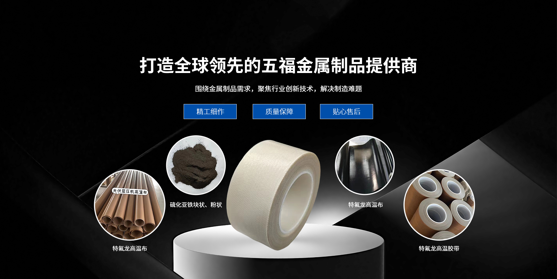 泰州市五福金屬制品有限公司位于泰興市根思鄉老葉村鞠前是一家集研發、生產、銷售為一體生產企業。主要生產銷售:硫化亞鐵,和特氟龍高溫布,高溫膠帶,膜膠帶,網帶,輸送帶等。五福不斷引進設備和技術,建立強大的研發、管理及業務團隊。品質是企業的核心力,;與客戶共同應對市場變換,并根據客戶實際要求達成共贏。公司不斷引進設備和技術以及人才,建立強大的研發、管理及業務團隊,在國內與多家大型集團企業合作。